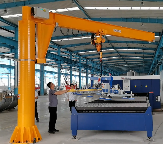 懸臂吊屬于中小型起重設(shè)備,大部分板材廠的激光切割,剪板上料都會使用到懸臂吊。板材廠的工作內(nèi)容會涉及到板材的切割和沖孔等一系列操作,進行這些操作就需要將大塊板材搬運到車床上,這些板材通過一兩個人的力量來進行搬運是極其費力的,不僅效率低下,并且還會隨時面臨劃傷,砸傷的危險。